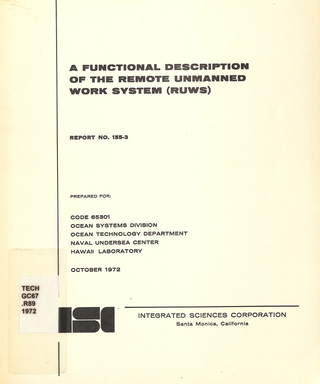 Prepared for Ocean Systems Division, Ocean Technology Department, Naval Undersea Center, October 1972