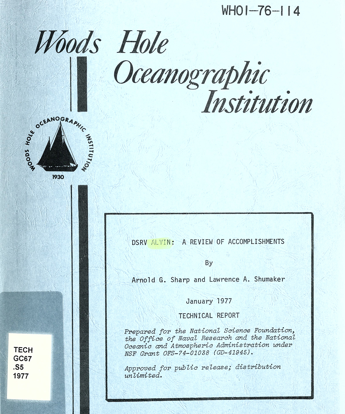 Woods Hole Oceanographic Institution Technical Report 76-114, January 1977
