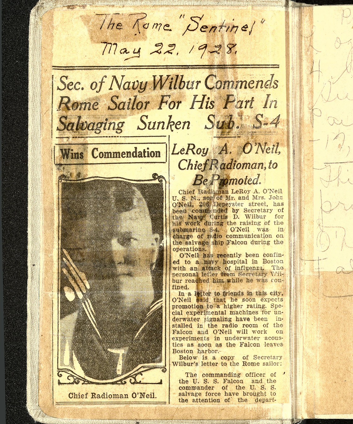 Diary of Leroy A. O’Neil, documenting the attempted rescue and salvage of USS S-4