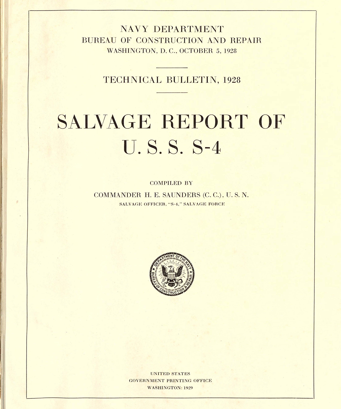 Salvage Report of Submarine USS S-4