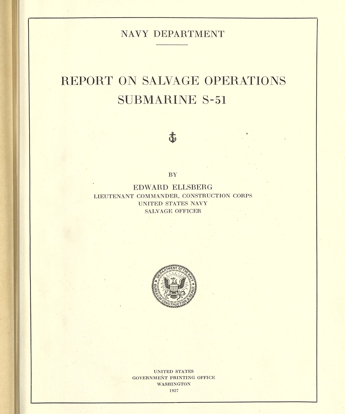 Report on Salvage Operations Submarine S-51