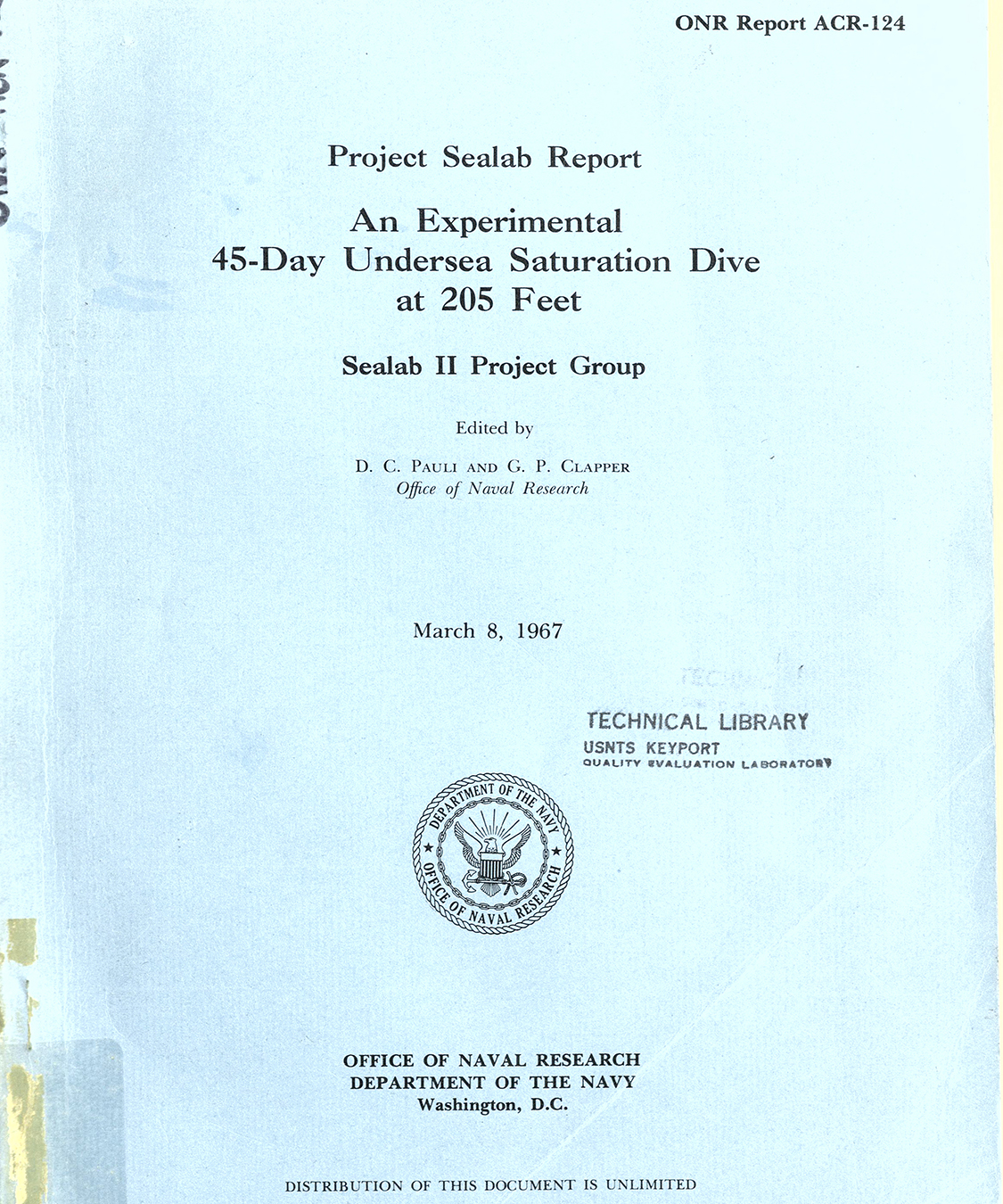 Sealab II Report: An Experimental 45-Day Undersea Saturation Dive at 205 Feet