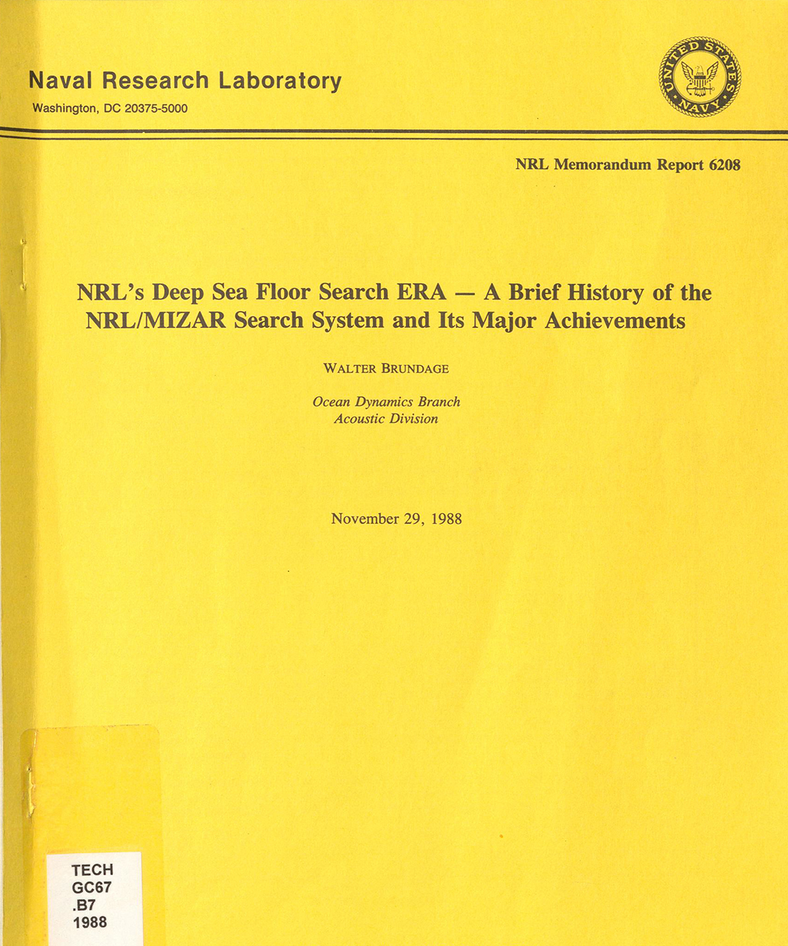 Published by the Naval Research Laboratory, November 29, 1988
